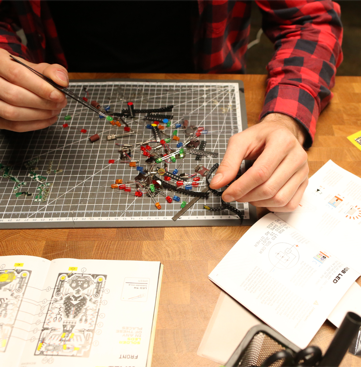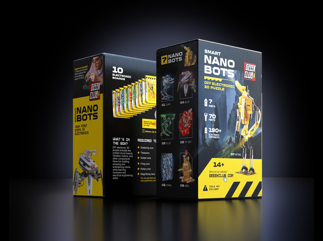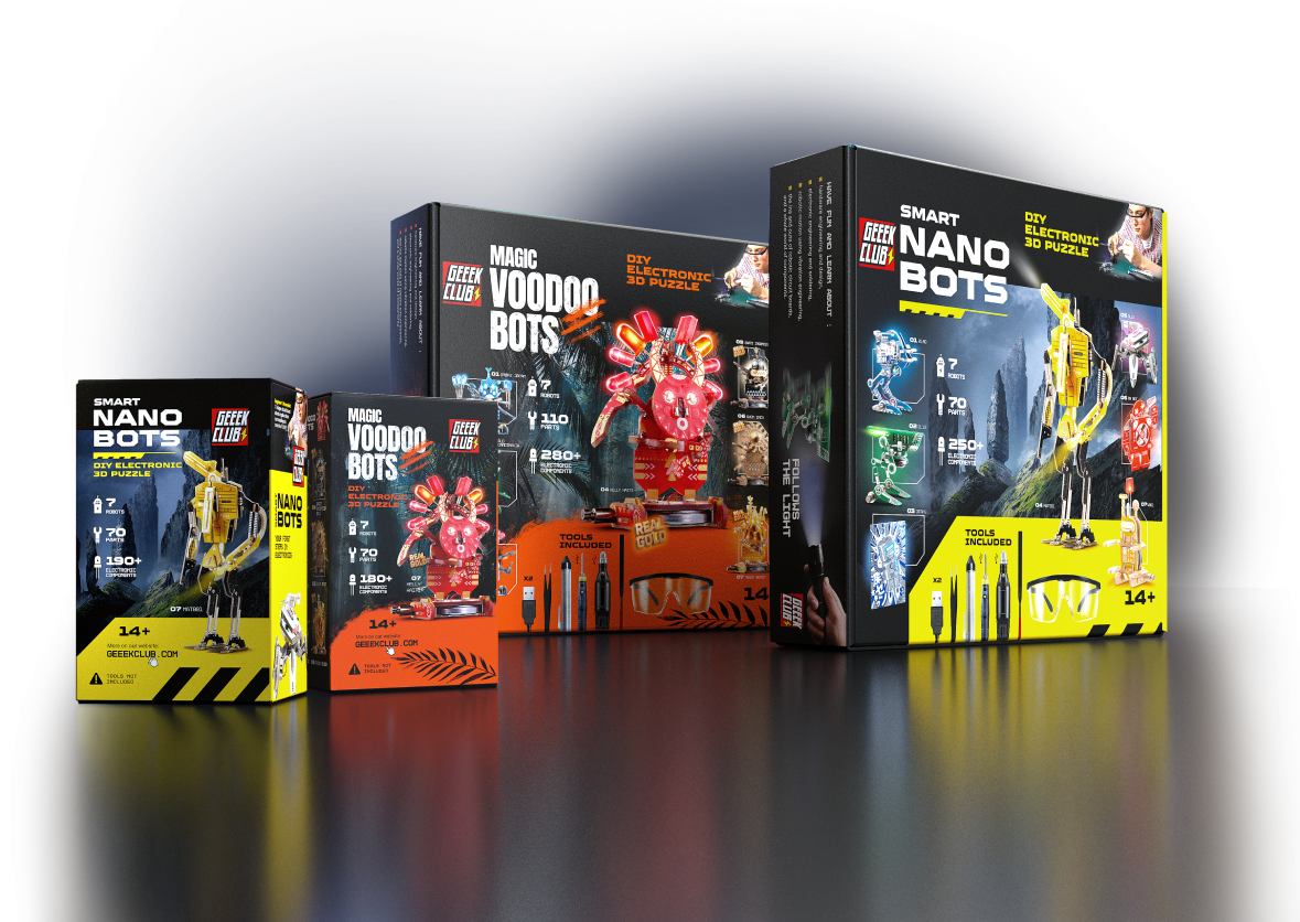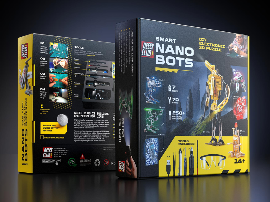 Each kit contains many steps to build your finished robot. And there is detailed soldering work. However, the instructions are very clear and any person with an ounce of "handiness" can easily build Geeek Club robots.