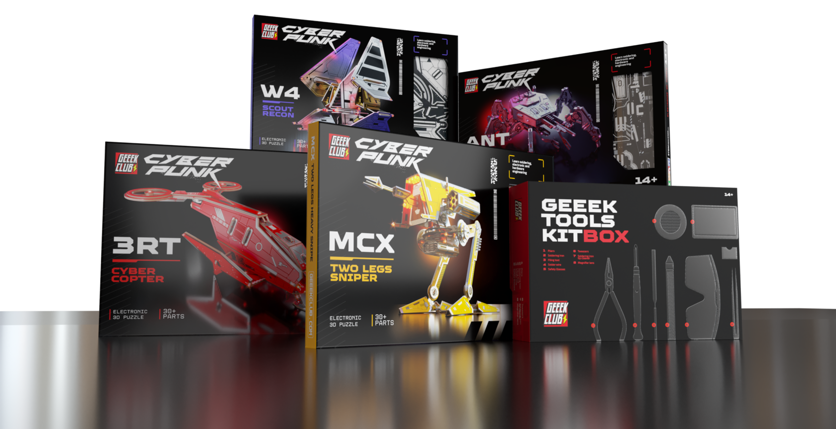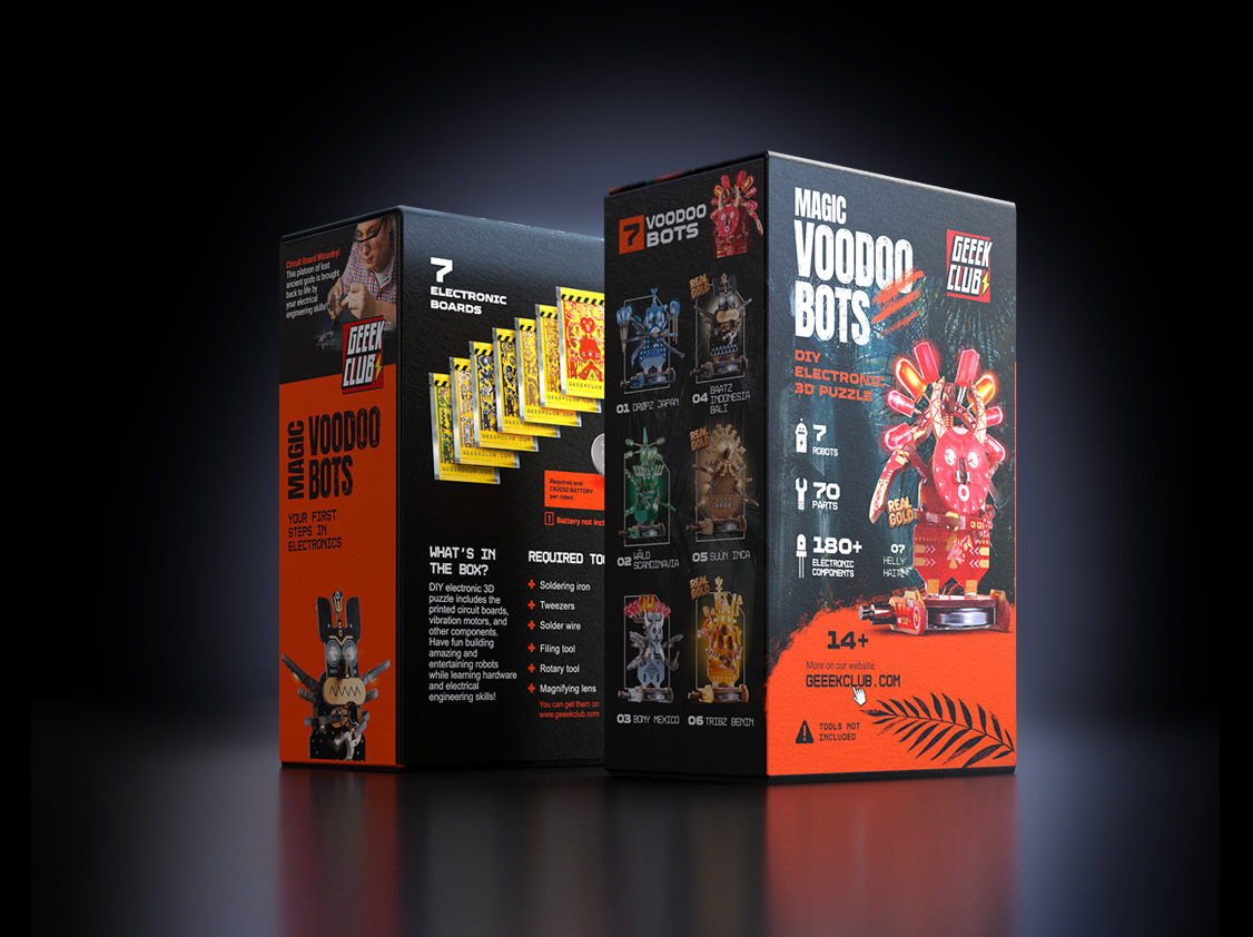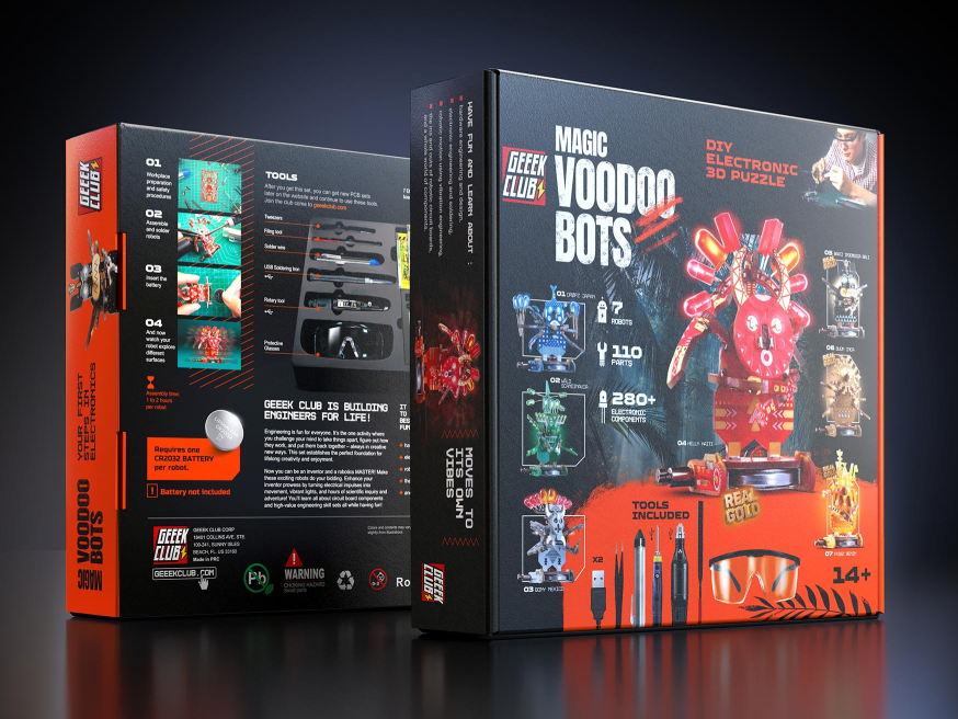 Each kit contains many steps to build your finished robot. And there is detailed soldering work. However, the instructions are very clear and any person with an ounce of "handiness" can easily build Geeek Club robots.