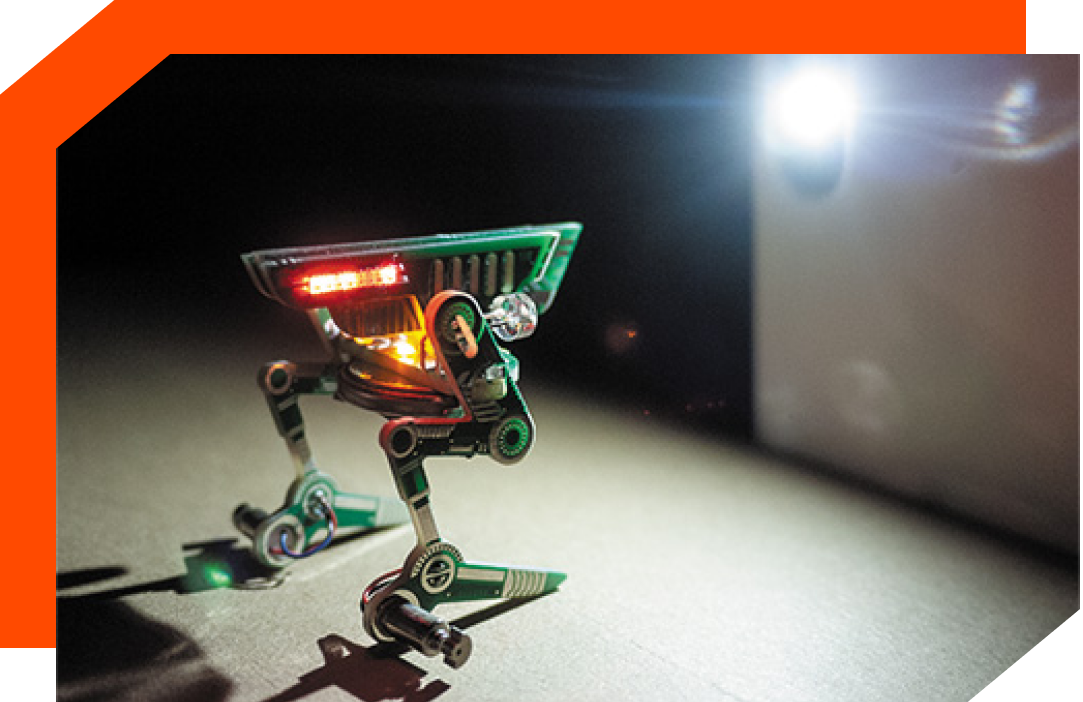 Find out how components interact with each other, how you can control the robot via sensors with the help of light, and how to make it move by changing the voltage on the vibratory motors.